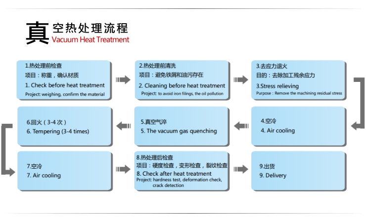 熱處理質量的好壞直接決定模具壽命的長短,鉅研特殊鋼嚴格按照材料指定的熱處理工藝進行操作,確保熱處理工件質量優秀穩定!
